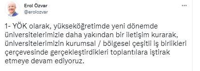 YÖK Başkanı Erol Özvar, toplantı sonrasında sosyal medya hesabından yaptığı paylaşımda, "YÖK olarak yükseköğretimde yeni dönemde üniversitelerle daha yakından bir iletişim kurarak, üniversitelerin çeşitli iş birlikleri çerçevesinde gerçekleştirdikleri toplantılara iştirak etmeye devam ettiklerini" belirtti.