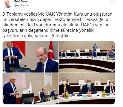 Bu kapsamda Manisa Celal Bayar Üniversitesinin ev sahipliğinde gerçekleştirilen Üniversitelerarası Kurul Başkanlığı (ÜAK) Yönetim Kurulu Toplantısı'na katıldığını aktaran Özvar, şunları kaydetti: "Toplantı vesilesiyle ÜAK Yönetim Kurulunu oluşturan üniversitelerimizin değerli rektörleriyle bir araya gelip, akademimizdeki son durumu ele aldık. ÜAK'a yapılan başvuruların değerlendirilme sürecine yönelik iyileştirme çalışmalarını görüştük. YÖK olarak, üniversitelerimizle sıkça bir araya gelmeyi ve birlikte çalışmayı planlıyoruz. Bu bağlamda üniversitelerimizle daha katılımcı ve yakın iletişim içinde olarak, Türk yükseköğretim hayatına birlikte büyük katkılar sağlayacağımıza inanıyorum."