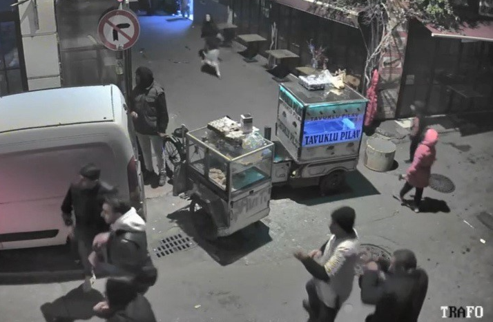 O anlar çevredeki güvenlik kamerası tarafından kaydedilirken, sokakta çocukların ve kadınları olduğu, bir kadının ise şok geçirerek olayın ortasında kaldığı anlar yer aldı. Kamera görüntülerini inceleyen Konak İlçe Emniyet Müdürlüğü Suç Önleme ve Soruşturma Büro Amirliği ekipleri, yaptıkları çalışma sonucu şüphelilerden A.C.V. (22) ve A.G.’yi (22) suç aletiyle birlikte kısa sürede yakalayarak gözaltına aldı.
