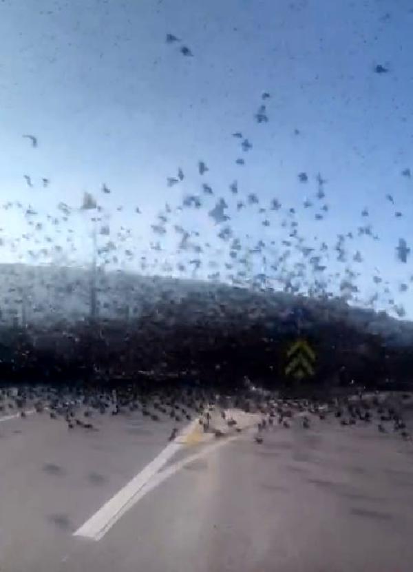 Çanakkale- İzmir karayolu, binlerce sığırcık kuşunun asfalta inmesi nedeniyle kısa süreliğine trafiğe kapandı. Yolu kapatan kuşları korna çalarak uzaklaştırmaya çalışan sürücülerin bu anları ise cep telefonuyla görüntülendi.