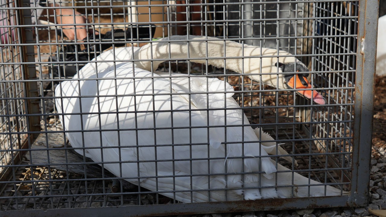 Ankara’nın Elmadağ ilçesinde göç yolundayken bir evin bahçesine düşen kuğu, bir gün boyunca ev sahibinin misafiri oldu.