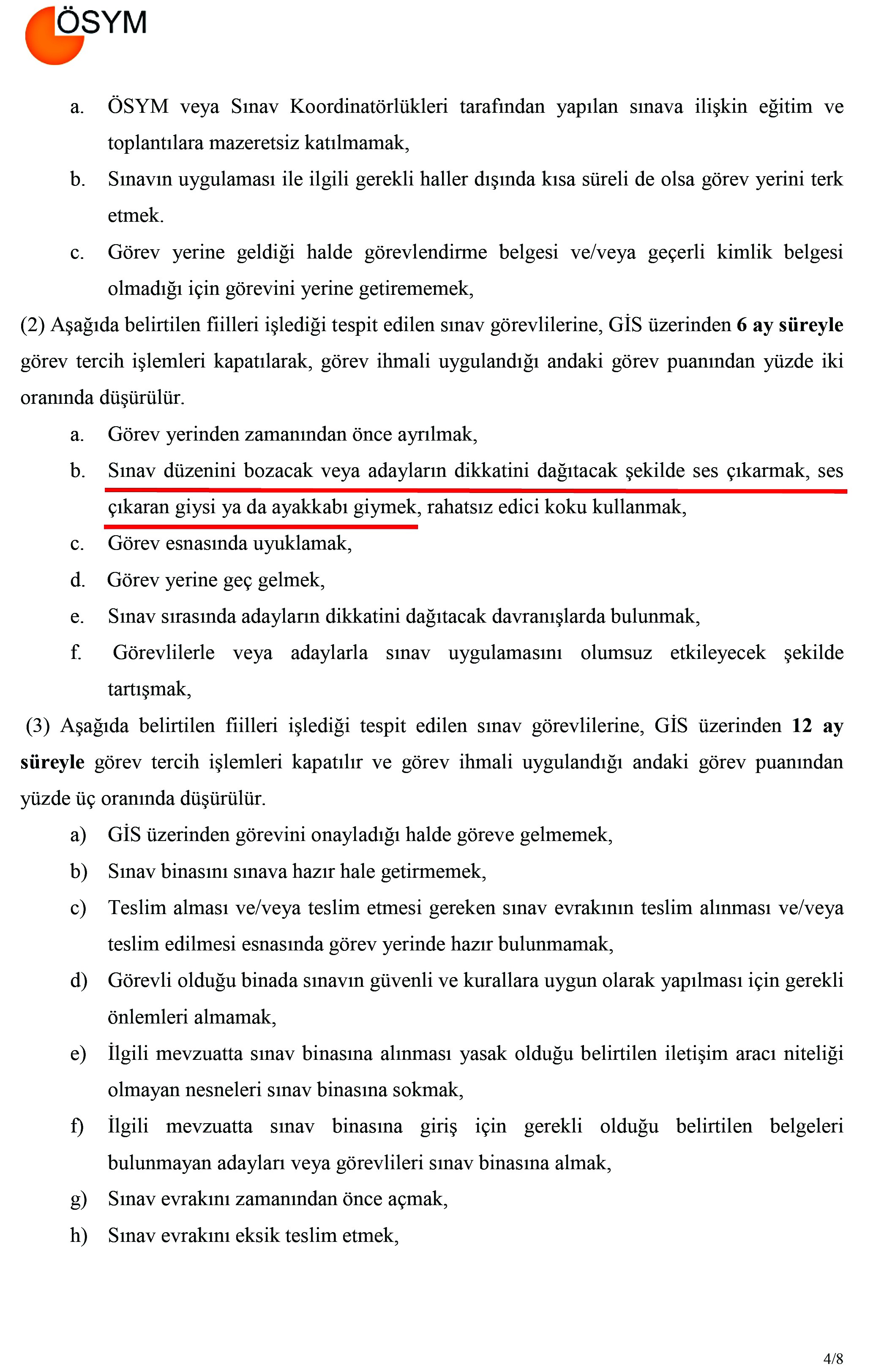 ÖSYM yönergesinin 2-B maddesinde şu ifadeler yer alıyor: “Sınav düzenini bozacak veya adayların dikkatini dağıtacak şekilde ses çıkarmak, ses çıkaran giysi ya da ayakkabı giymek, rahatsız edici koku kullanmak...”