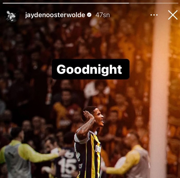 Jayden Oosterwolde ise Fenerbahçe'nin Galatasaray'a attığı golün ardından Galatasaraylı taraftarlar karşısında yaptığı sevinci paylaşarak ''İyi geceler'' notunu düştü.