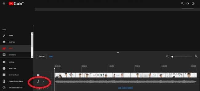Düzenleyici, kurgu sayfasında video düzenleme kısmının hemen altında nota işareti bulunuyor.