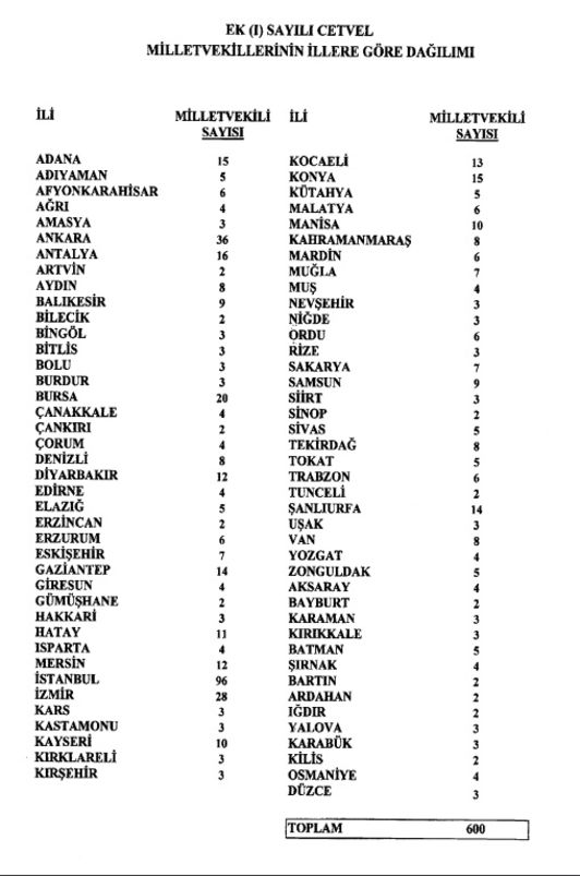 Son karar sonrası İstanbul'un vekil sayısı 96, Ankara'nın vekil sayısı 36, İzmir vekil sayısı 28, Bursa'nın vekil sayısı ise 20 olarak belirlendi. YSK, çıkaracağı vekil sayısı 18'in üzerinde olan İstanbul’un 3, Ankara, İzmir ve Bursa’nın ise 2 secim çevresi olarak devam etmesini kararlaştırdı.