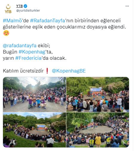Türkçe çizgi filmler yurt dışındaki çocuk yaştaki vatandaşlar için dil ve kültür gelişiminde önemli bir işlev görüyor. Yurtdışı Türkler ve Akraba Topluluklar Başkanlığı (YTB) TRT Çocuk Kanalı’nın en sevilen çizgi filmlerinden Rafadan Tayfa’nın kahramanlarını bu kapsamda Avrupa’daki minik vatandaşlarla buluşturuyor. Bu sayede yurt dışında yaşayan çocuk yaştaki vatandaşların Türkçe gelişimlerine katkı sunan YTB aynı zamanda onların eğlenirken öğrenmelerini de sağlıyor. Avrupa’nın farklı şehirlerindeki salonlarda tiyatro gösterileri sunan Rafadan Tayfa kahramanları; Akın, Hayri, Mert, Kamil, Sevim ve Hale'nin seslendirdiği şarkılar ise kültürel öğeler barındırıyor. Hayranı oldukları çizgi kahramanları ile buluşan minikler gösterilerle doyasıya eğlenerek unutulmaz anlar yaşıyor. Rafadan Tayfa ekibinin gelecek durağı Danimarka olacak. Başkent Kopenhag ve Fredericia'da minik vatandaşlarla buluşacak. Gösterilerden bütün davetliler ücretsiz olarak yararlanabiliyor.