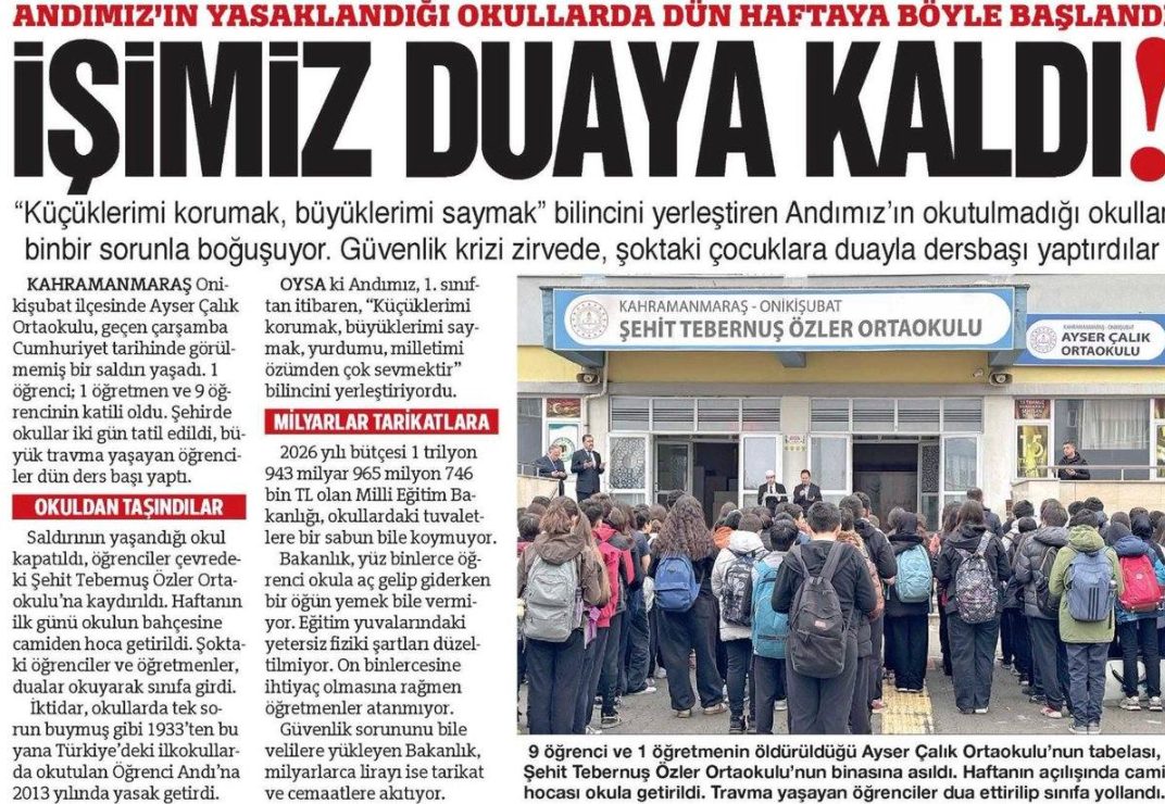 Yeni Akit yazarı Ali Karahasanoğlu, dünkü yazısında 23 Nisan dönemi üzerinden yapılan tartışmaları ve sergilenen tavırları mercek altına aldı. Karahasanoğlu, özellikle Şanlıurfa ve Kahramanmaraş’ta yaşanan acı olayların gölgesinde yapılan kutlamaları ve bazı yayın organlarının "dua" konusundaki çelişkili tutumlarını eleştirdi.