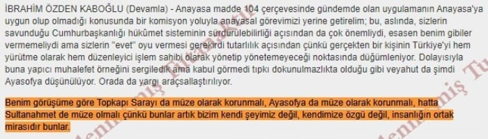 Kemalist, laikçi CHP'nin İstanbul Milletvekili İbrahim Kaboğlu duyanların kulaklarına inanamayacağı büyük bir küstahlığa imza attı. Hadsiz vekil, Ayasofya tartışmaları sürerken Sultanahmet Camii'nin de müze olması gerektiğini söyledi. Kaboğlu Meclis'te yaptığı konuşmada, "Benim görüşüme göre Topkapı Sarayı da müze olarak korunmalı, Ayasofya da müze olarak korunmalı hatta Sultanahmet de müze olmalı çünkü bunlar artık bizim kendimize özgü değil, insanlığın ortak mirasıdır bunlar" ifadelerini kullandı.
