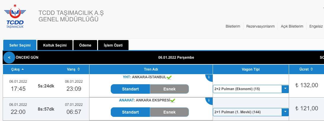 Ankara-İstanbul (Kadıköy) arası 98.5 lira olan bilet fiyatı 118.5 lira olurken gidiş-dönüş ücreti ise 202 lira olarak belirlendi.