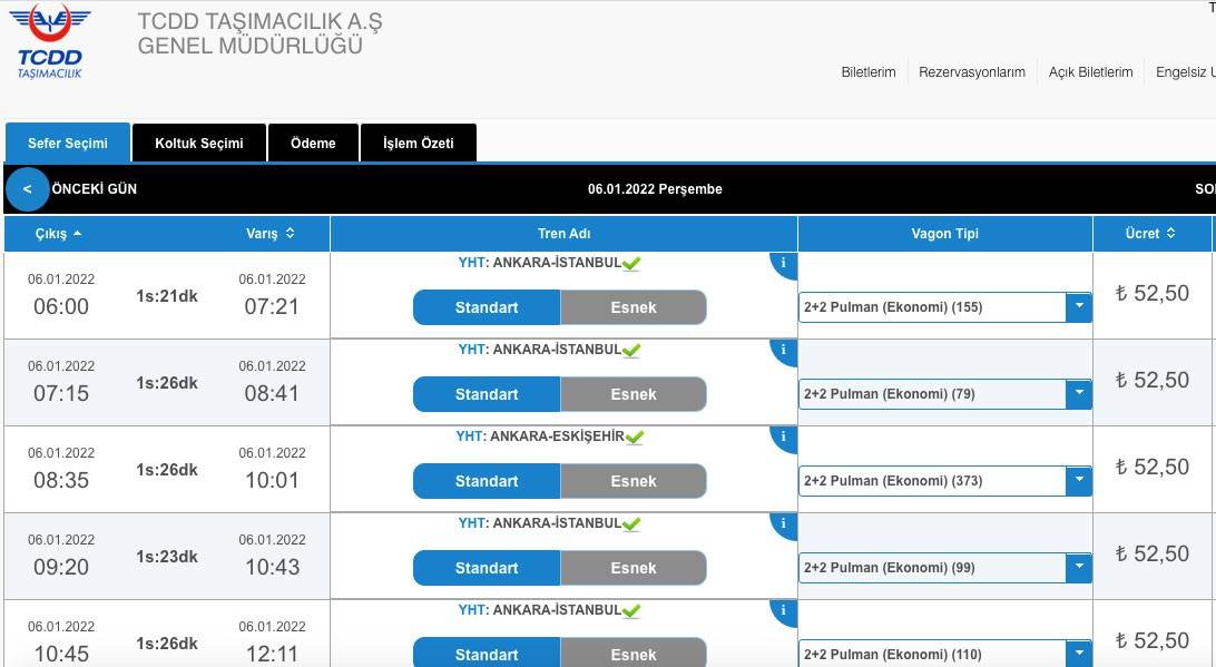 Konya-Ankara arası hızlı tren bilet fiyatı 45 TL’den 53.5, gidiş-dönüş ücreti 90, Konya-İstanbul arası hızlı tren bileti de 118 TL’den 143 TL’ye yükseldi. Konya-Ankara arası sefere yüzde 16, Konya-İstanbul arası sefere de yüzde 21 zamlanmış oldu.