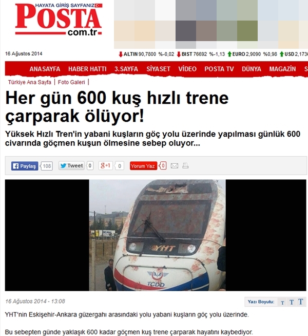 Türkiye Cumhuriyeti Devlet Demiryolları'nın (TCDD) konu ile ilgili 2013 yılında yaptığı açıklamayı da yeniymiş gibi yansıtan medya organları, yaşanan bu üzücü olayın üzerinden 9 ay gibi kısa bir zaman geçmesine rağmen YHT’nin güzergahından geçen kuşların gerçekten de YHT’ye alıştığı ve farklı bölgeden geçtiği gerçeğini gizleme yoluna gitti.