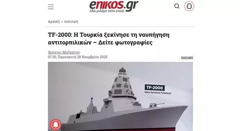 Türkiye’nin bu hamlesi, Yunanistan’da da büyük yankı buldu. Ülkenin önde gelen gazetelerinden Enikos, “İstanbul tersanelerinde Türkler yerli üretim gemileri denize indirmeye devam ederken, Yunanistan donanması sadece izliyor” ifadelerini kullandı.