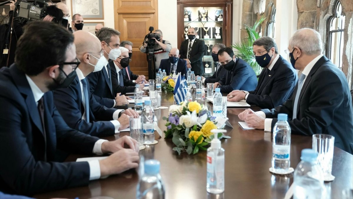 Güney Kıbrıs Rum Yönetimi’ne ziyarette bulunan Yunanistan Başbakanı Kriyakos Miçotakis, Helenizm (Adayı Yunanlaştırmak) ağzıyla konuşarak Türk askerini işgalcilikle suçladı.