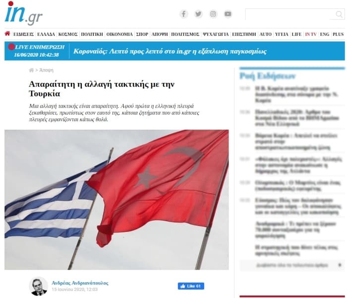 Yunan sitesi İn.gr'de yer alan yazıda, Yunanistan'ın Türkiye karşısında taktik değiştirmesi gerektiği ifade edildi.