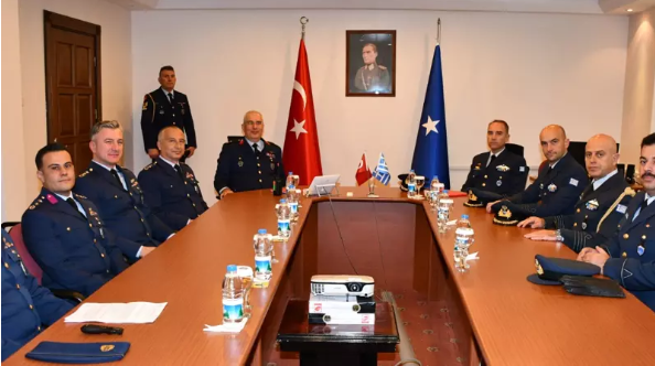 Bakanlığın NSosyal hesabından yapılan paylaşımda, Yunanistan 111'inci Hava Üs Komutanlığından Hava Pilot Albay Panagiotis Katsikaris ve beraberindeki heyetin, üssü ziyaret ettiği ifade edildi.