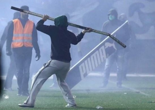 Güvenlik güçlerinin olayları yatıştırmaya çalışmasına rağmen Panathinaikoslu taraftarlar stadı adeta savaş alanına çevirince hakem Andreas Pappas, karşılaşmayı ileri bir tarihe erteledi.