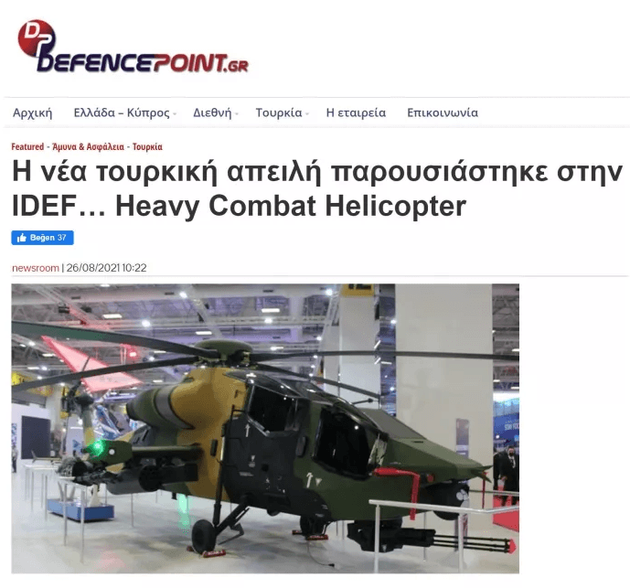 Yunanistan'ın savunma sanayi haber portalı "defence-point", ATAK 2'nin IDEF'te sergilenmesini sayfalarına taşıdı.