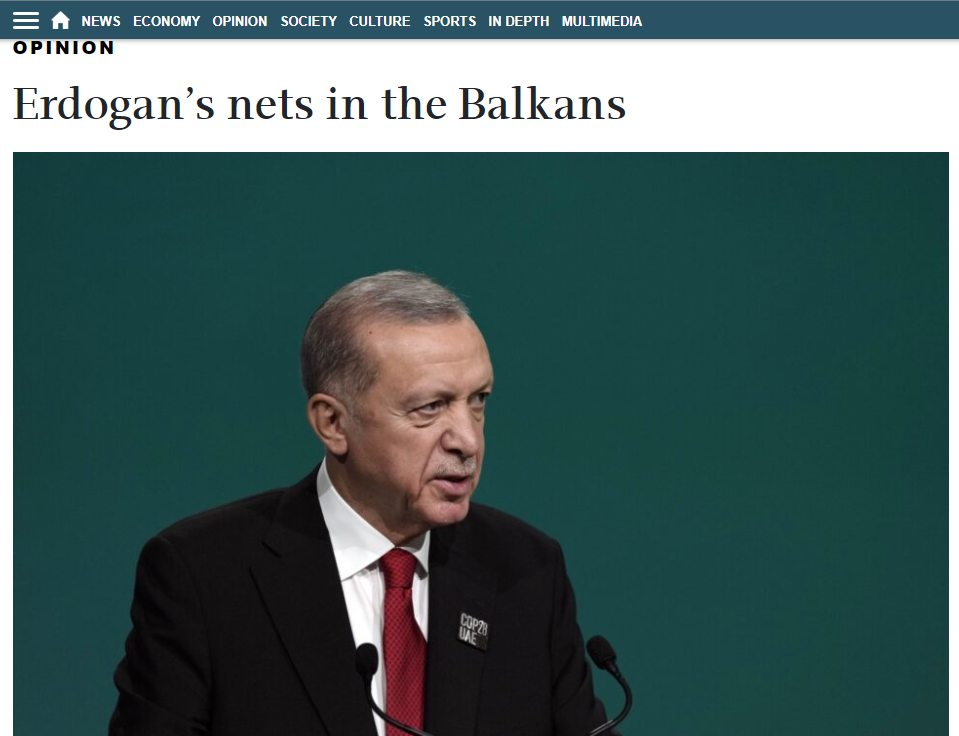 Gazetenin fikir-analiz kategorisinden yayınlanan yazıda, "Erdoğan'ın balkanlardaki ağları" başlığı kullanıldı.