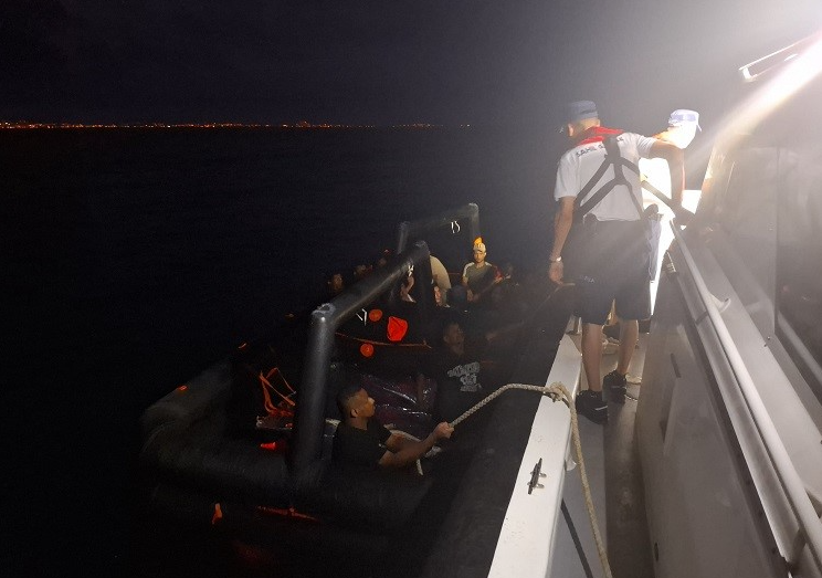Aydın'ın Kuşadası ilçesi açıklarında, yasa dışı yollarla Yunanistan'a geçmeye çalışan düzensiz göçmenler, Yunan unsurlarınca Türk karasularına geri itildi.