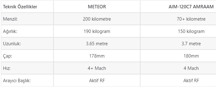 RamJet itki sistemi sebebiyle havada çok daha uzun bir süre süzülen METEOR Füzesi, Türk Hava Kuvvetleri tarafından da kullanılan AIM-120 Füzesi’nden neredeyse 3 kat daha fazla bir menzile sahip. Türkiye de GÖKHAN Projesi kapsamında METEOR muadili bir füzeyi geliştirmeyi hedefliyor.