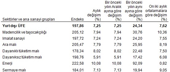 Yurt dışı üretici fiyat endeksi aylık yüzde 5,04 arttı. Aylık en fazla artış bilgisayarlar ile elektronik ve optik ürünlerde gerçekleşti.