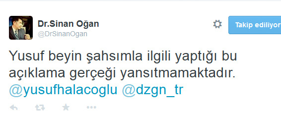 Ancak Halaçoğlu'nun bu mesajına cevap veren Sinan Oğan, "Yusuf beyin şahsımla ilgili yaptığı bu açıklama gerçeği yansıtmamaktadır." diye yazdı. Oğan, "Dostlarım, neden başvurmadığımı mutlaka açıklayacağım. Lütfen partimize zarar verecek yorumlar yazmayalım. Aslolan partimiz ve davamızdır..." diye yazdı.