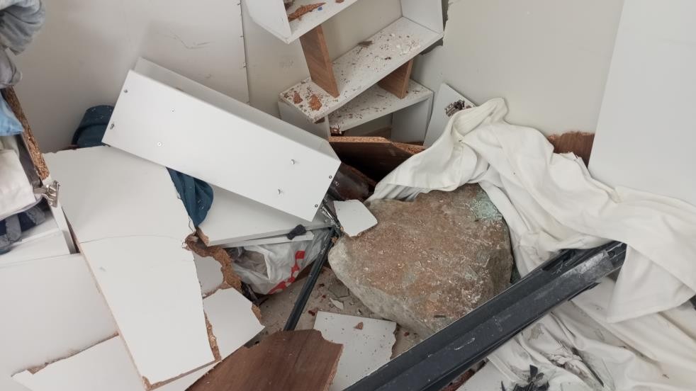 Olay Yusufeli ilçesine bağlı Tekkale köyünde dün gece meydana geldi. Alınan bilgiye göre, Yusufeli Barajı nedeniyle sular altında kalan Tekkale köyünün taşındığı yeni yerinde yamaçtan kopan kayalar Nurettin Yüksel ve Mustafa Yıkılmaz'a ait evlere zarar verdi. Aileler, kayaların evlerine girmesiyle büyük korku yaşadı. Kopan dev kaya kütlesi, Nurettin Yüksel'in evinin duvarını yıkıp içeri girerken, bir diğer kaya parçası ise Mustafa Yıkılmaz'ın evinin camından girerek evin içini adeta harabeye çevirdi. Olay sırasında evlerinde oturan aileler, büyük bir panikle kendilerini dışarı attı.