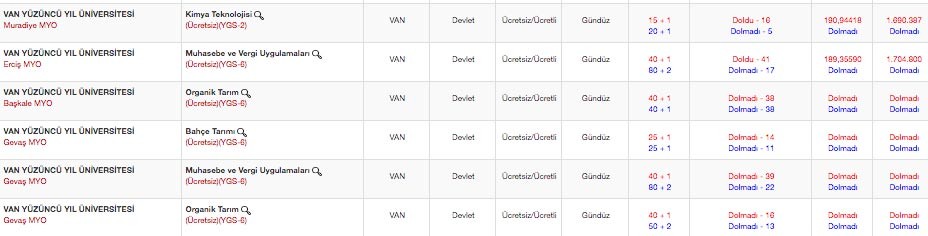 Yüzüncü Yıl Üniversitesi taban puanları 2019 YÖK atlas için tıklayınız