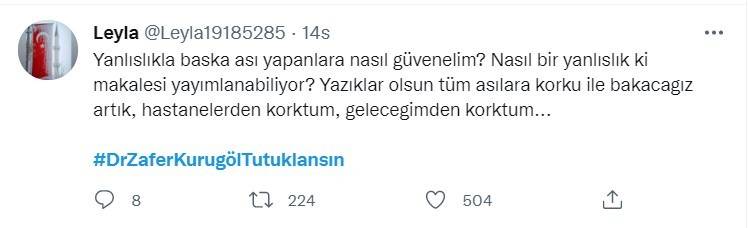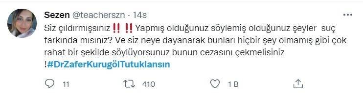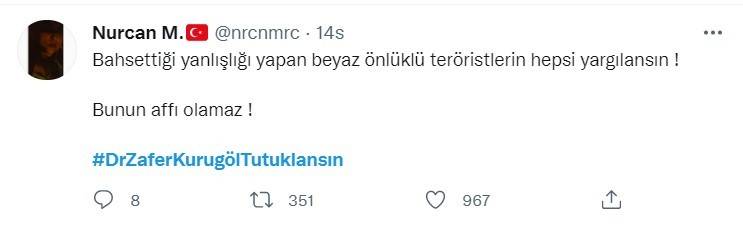 Vatandaşların tepkisini yazdığı #DrZaferKurugölTutuklansın etiketi Türkiye'ye gündemi listesine girdi. Etikete on binlerce tepki tweeti atıldı.Etikette Abdurrahman Dilipak, Serdar Arseven, Erkan Trükten gibi isimler de tepkilerini dile getirdi.