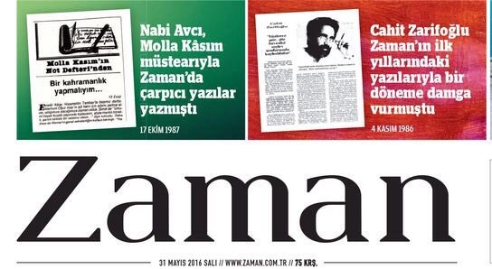 “Örgüt bültenini çağrıştırdığı” gerekçesiyle Zaman Gazetesi okurları logonun değiştirilmesini istedi. Genel Yayın Yönetmeni Kenan Kıran, bu istek doğrultusunda hazırlanan yeni logoyu ve yenilik sonrası hazırlanan ilk sayfa mizanpajını sosyal medya hesabı twitter üzerinden paylaştı.