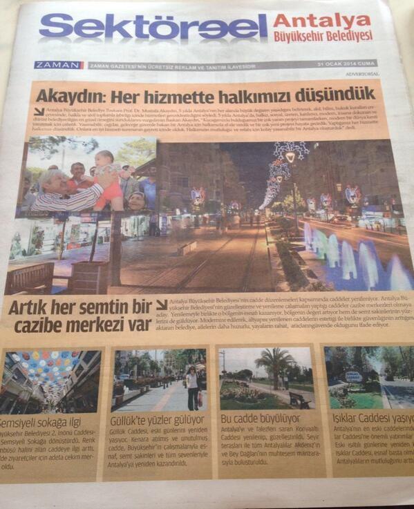 Gülen grubunun 'satışları'yla ünlü gazetesi Zaman, bira festivali ve diğer çalışmaları sebebiyle eleştirdiği Antalya Büyükşehir Belediyesi için şimdilerde ise PR yapıyor: