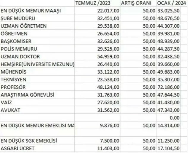 Farklı görevlerdeki memur maaşları da bu doğrultuda artmaya devam edecek.