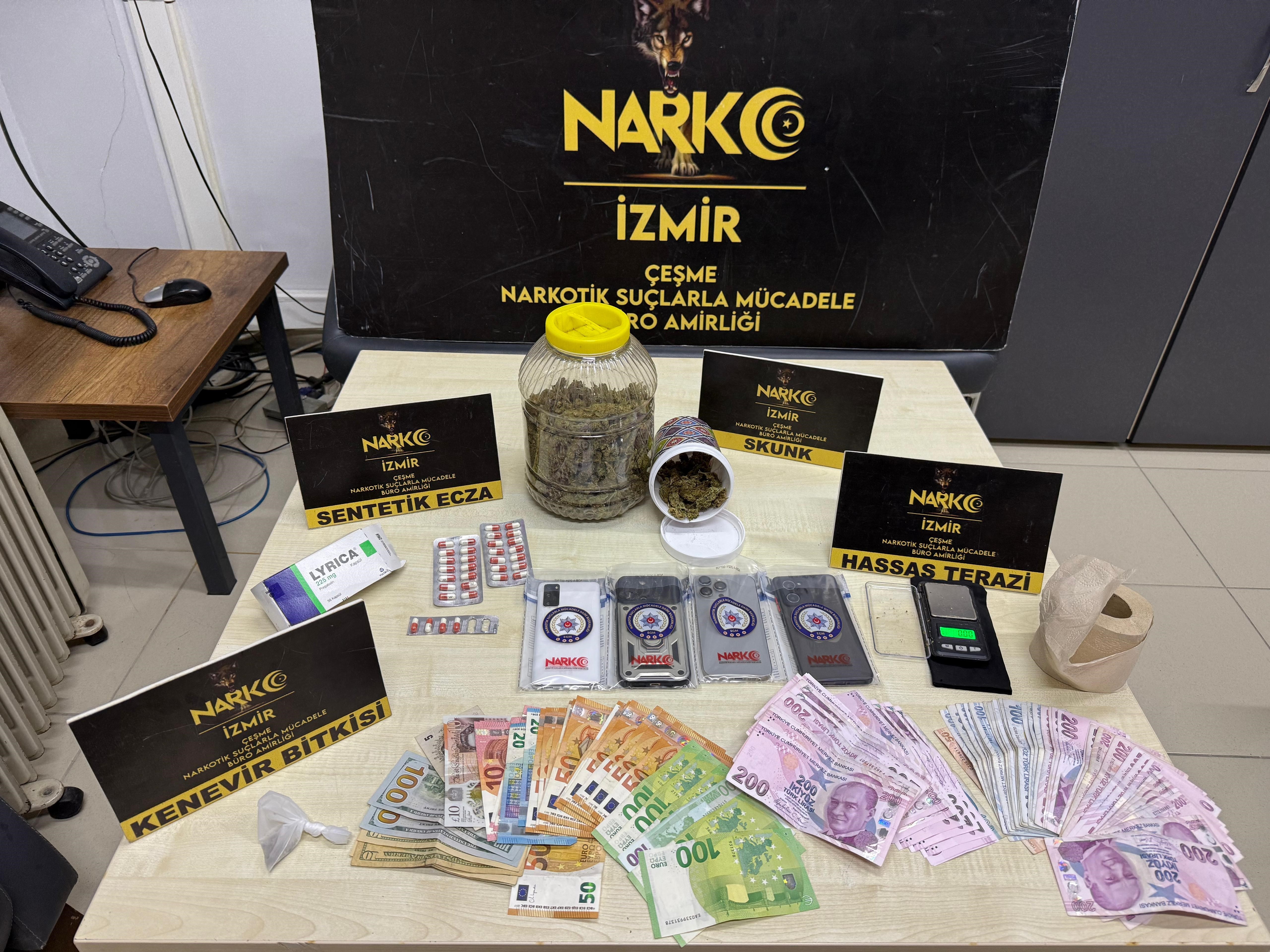 Çeşme, Karaburun, Seferihisar ve Urla Cumhuriyet Başsavcılıkları koordinesinde, İzmir Emniyet Müdürlüğü İstihbarat Şube Müdürlüğünün desteğiyle Çeşme Narkotik Suçlarla Mücadele Büro Amirliği ve Çeşme İlçe Emniyet Müdürlüğü ekiplerince, 2025 yılının yaz aylarında uyuşturucu ve uyarıcı madde ticareti yapan şüphelilere yönelik operasyonlar düzenlendi. Belirlenen adreslere gerçekleştirilen 11 ayrı operasyonda 23 şüpheli hakkında işlem yapıldı, 11 şüpheli çıkarıldıkları mahkemece tutuklandı.
