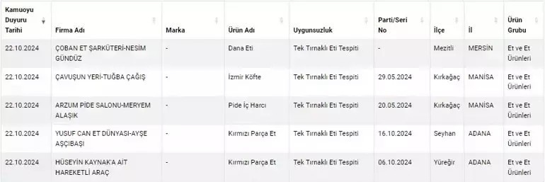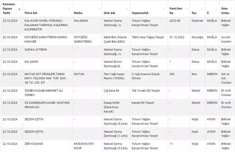 Tarım ve Orman Bakanlığı, gıdada sahteciliğin önüne geçmek için ifşa listesini yayınlamayı sürdürüyor. Et, kaşar ve zeytinyağlarında inanılmaz usulsüzlükler yapıldığı ortaya çıktı.