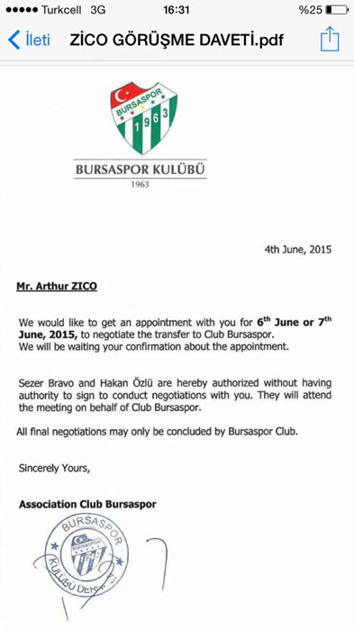 Türkiye’de 2006-08 yılları arasında görev yapan Zico’nun, Bursaspor’la ilgili olarak yakın dostu olan iş adamı ve menajer olarak çalışan Erdal Akgündüz’den bilgi aldığı bildirildi. Hindistan Ligi ekiplerinden Goa’yla olan sözleşmesi devam eden Zico’nun, birkaç Bundesliga ekibiyle görüşüp sonra Yeşil-Beyazlılar’la pazarlık masasına oturacağı ifade edildi.