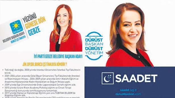 İYİ Parti'den aday olan Burcu Çetinkaya, partisi CHP'nin adayını destekleme kararı alınca Saadet Partisi'ne geçti. İYİ Parti logosuyla afişler hazırlatıp kamuoyuyla paylaşan Çetinkaya, bu kez de SP logolarıyla boy gösterdi. Gaziantep Şahinbey'de de CHP adayını 2 kez değiştirmesi dikkat çekti.