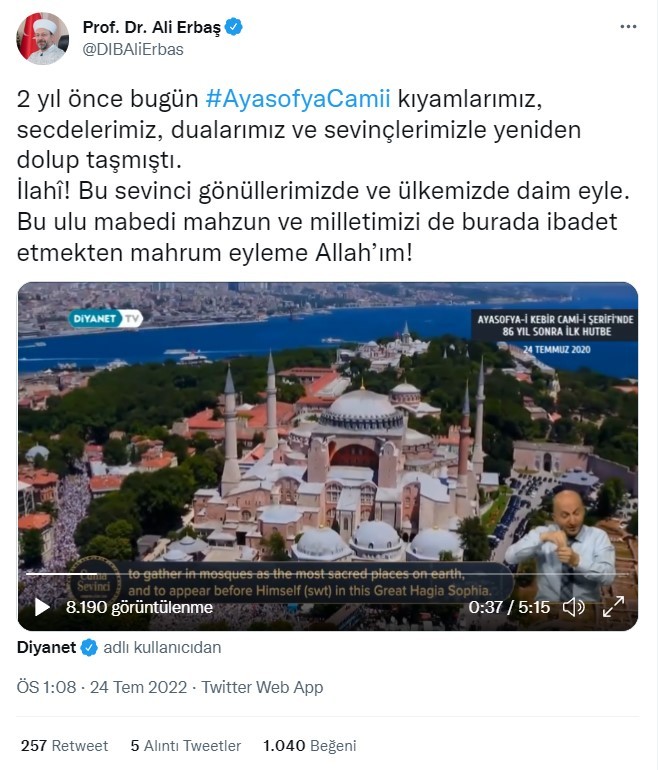 2 yıl önce bugün #AyasofyaCamii kıyamlarımız, secdelerimiz, dualarımız ve sevinçlerimizle yeniden dolup taşmıştı.