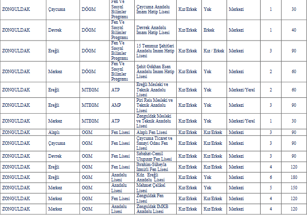 Zonguldak liselerinin kontenjan kapasitesi ne kadar?