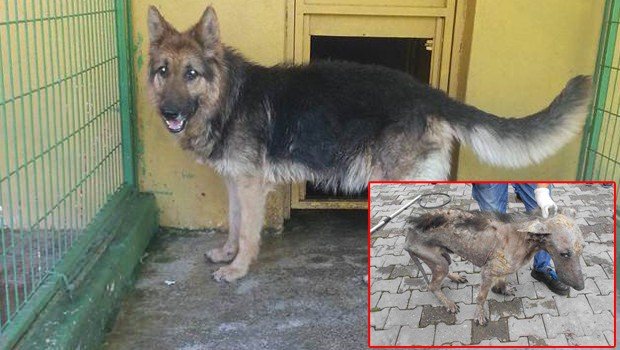 Zonguldak'ın Ereğli ilçesinde uyuz nedeniyle tüyleri dökülmüş ve aşırı zayıflamış halde bulunan Alman kurdu cinsi köpeğin 6,5 aylık tedavinin ardından yaşadığı değişim, görenleri şaşırtıyor.