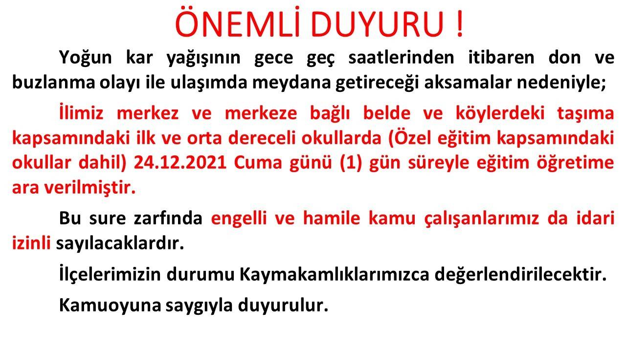 Zonguldak'ta yarın okullar tatil mi? 24 Aralık Cuma Zonguldak'ta okullar tatil mi?