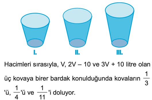 Buna göre, 3000 litrelik bir depo, her seferinde II. ve III. kovalar birlikte kullanılarak en az kaç seferde doldurulabilir?
