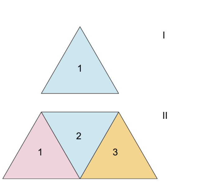 Eşkenar üçgenlerden oluşan yukarıdaki şekillerden I. üçgenin çevresi 3 birimdir.