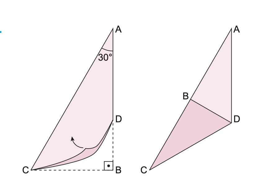 Şekilde verilen ABC 30-60-90 dik üçgeninin BC kenarı AC kenarı üzerine gelecek biçimde [CD] boyunca katlanıyor.