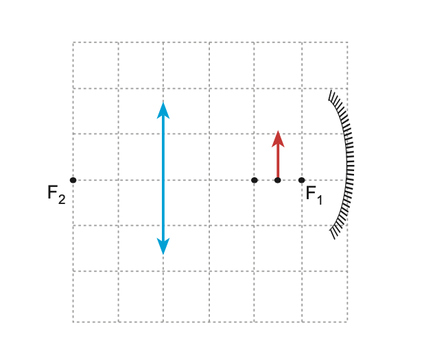 Asal eksenleri çakışık hava ortamındaki ince kenar- lı mercek ile çukur ayna şekildeki gibi yerleştirilmiş- tir. F1 çukur aynanın odağı, F2 ince kenarlı merceğin odağıdır.