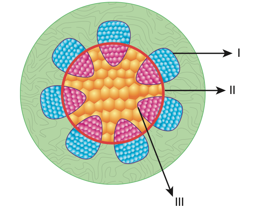 Kapalı tohumlu bir bitkinin gövdesinden alınan kesitte gösterilen kısımlarla ilgili aşağıdaki ifadelerden hangisi yanlıştır?