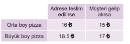 Bir pizza restoranında, pizza fiyat listesi aşağıdaki gibidir.