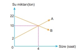 Yukarıdaki şekilde A ve B havuzlarındaki su miktarının zamana göre değişimi göstermektedir.