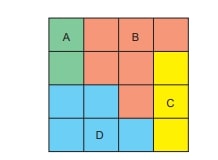 Bir şirketin %4 ü halka arz edilmiştir. Geriye kalan %96 sı A, B, C, D isimli dört kişiye aittir. Bu dört kişinin şirketin %96 sındaki sahip oldukları hisse oranları yukarıdaki gibi bölge alanları ile gösterilmektedir.