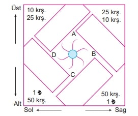 Yukarıdaki makine, karışık halde duran madeni 10 kuruş, 25 kuruş, 50 kuruş ve 1 TL’lik paraları ayırıp sınıflandırma işlemi yapmaktadır. Ortada duran hazneye paralar konulmakta, hazne kendi ekseni etrafında ok yönünde dönmekte ve A, B, C, D haznelerinden paralar gösterilen, kendi bölmesine yollanmaktadır. Kurala göre üst bölmelere 10 krş. veya 25 krş. alt bölmelere 50 kuruş veya 1 TL yollanabilir. Bir miktar para orta hazneye ayrılmak üzere konuluyor ve hazne dönmeye başlıyor.