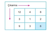 Yukarıdaki işlemde hücreler içine yazılmış, yukarıdan aşağı ve soldan sağa çıkarma işlemleri yapılmıştır.